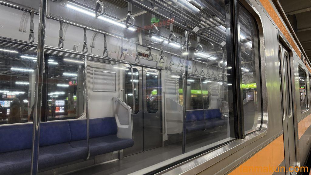 車内広告やドアステッカー、路線図などが全て撤去されていて、